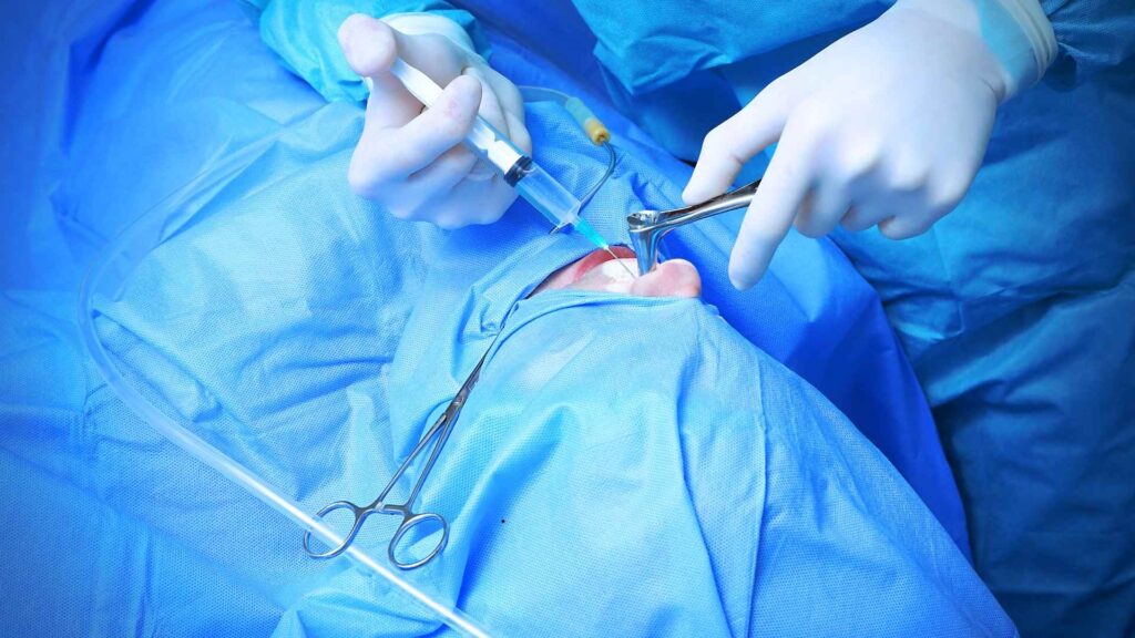 The expert surgical team actively executes the procedure using highly precise, standardized medical steps. First, the expert anesthesiologist safely administers highly effective general anesthesia for your absolute comfort.